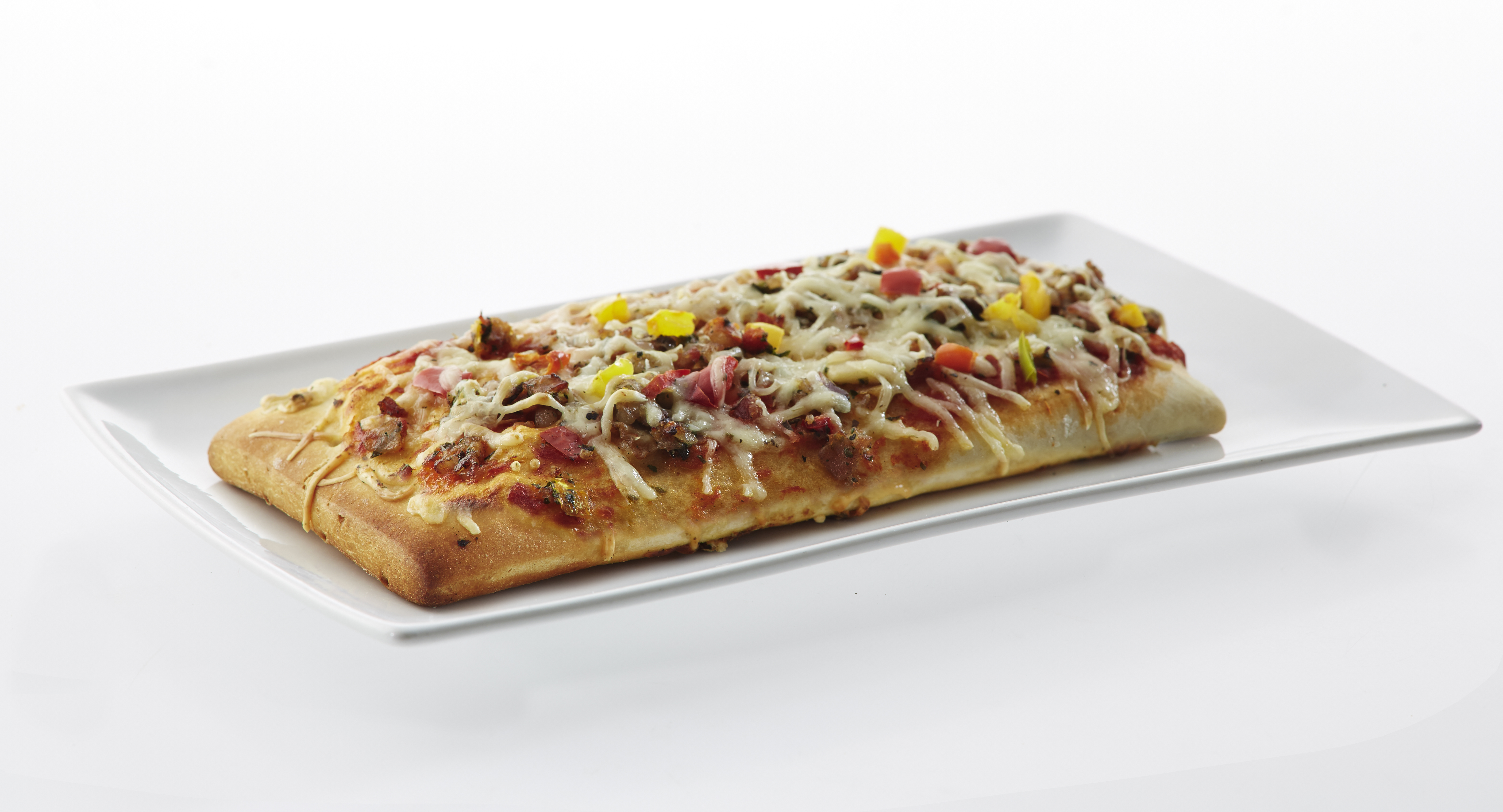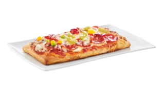 Hefeteig, Tomatensauce, Salami, Käse, Paprika, Pfefferoni, Oregano