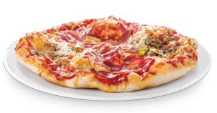 Hefeteig, Tomatensauce, Schinken, Salami, Thunfisch, Speck, Käse, Champignons, Oregano